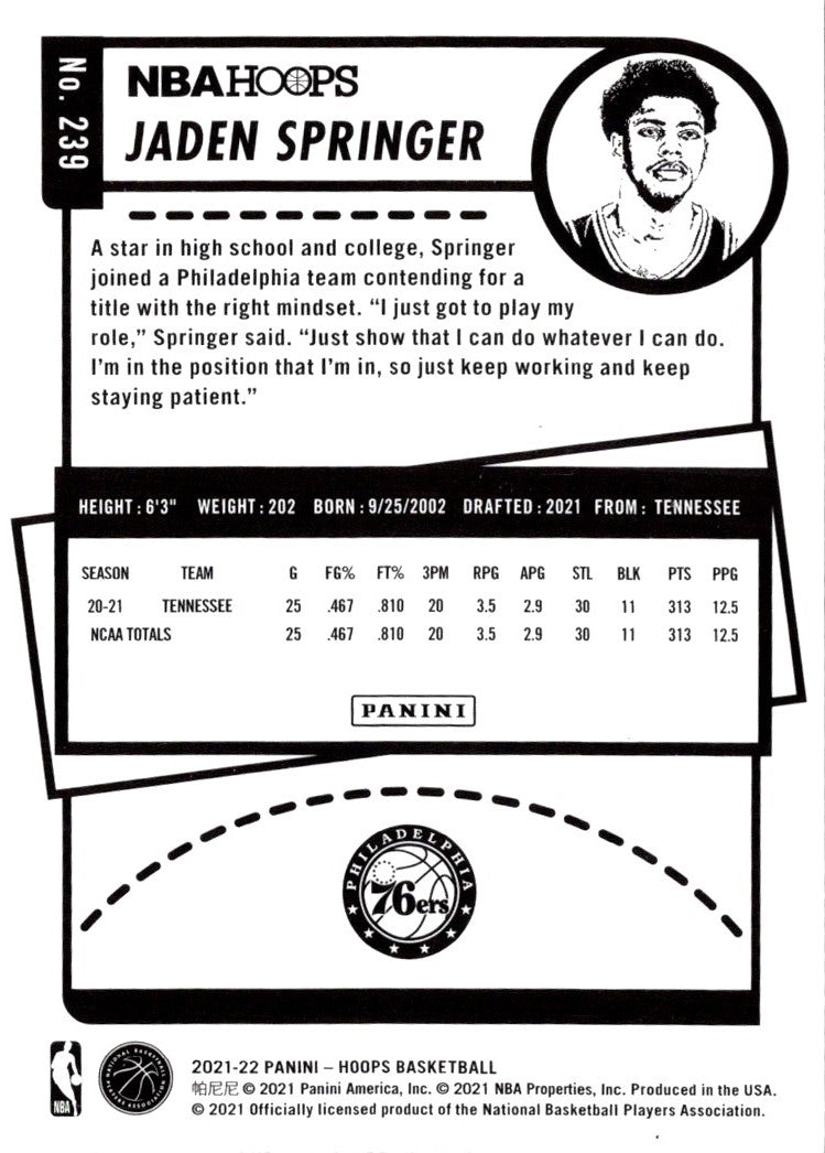 Description: 2021 Hoops Red Backs Jaden Springer #239
