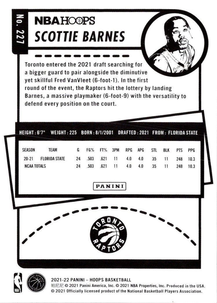 Description: 2021 Hoops Red Backs Scottie Barnes #227