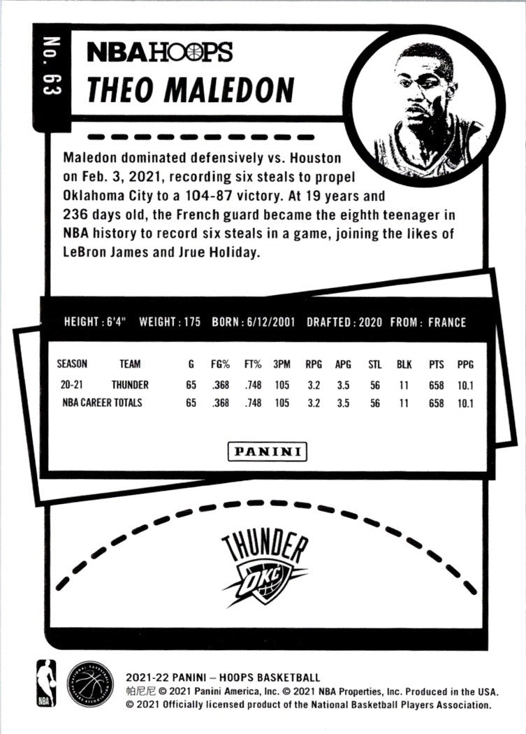 Description: 2021 Hoops Red Backs Theo Maledon #63