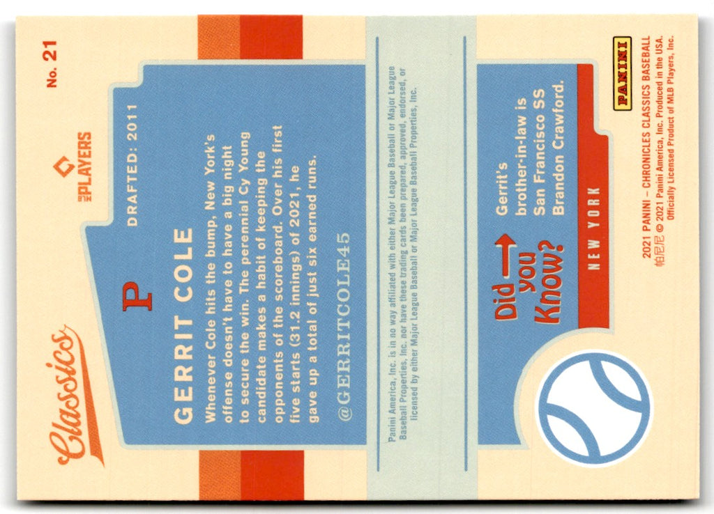 Description: 2021 Panini Chronicles Classics Gerrit Cole #21