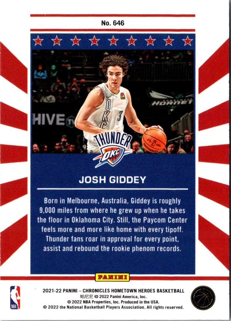 Description: 2021 Panini Chronicles Josh Giddey #646 Rookie