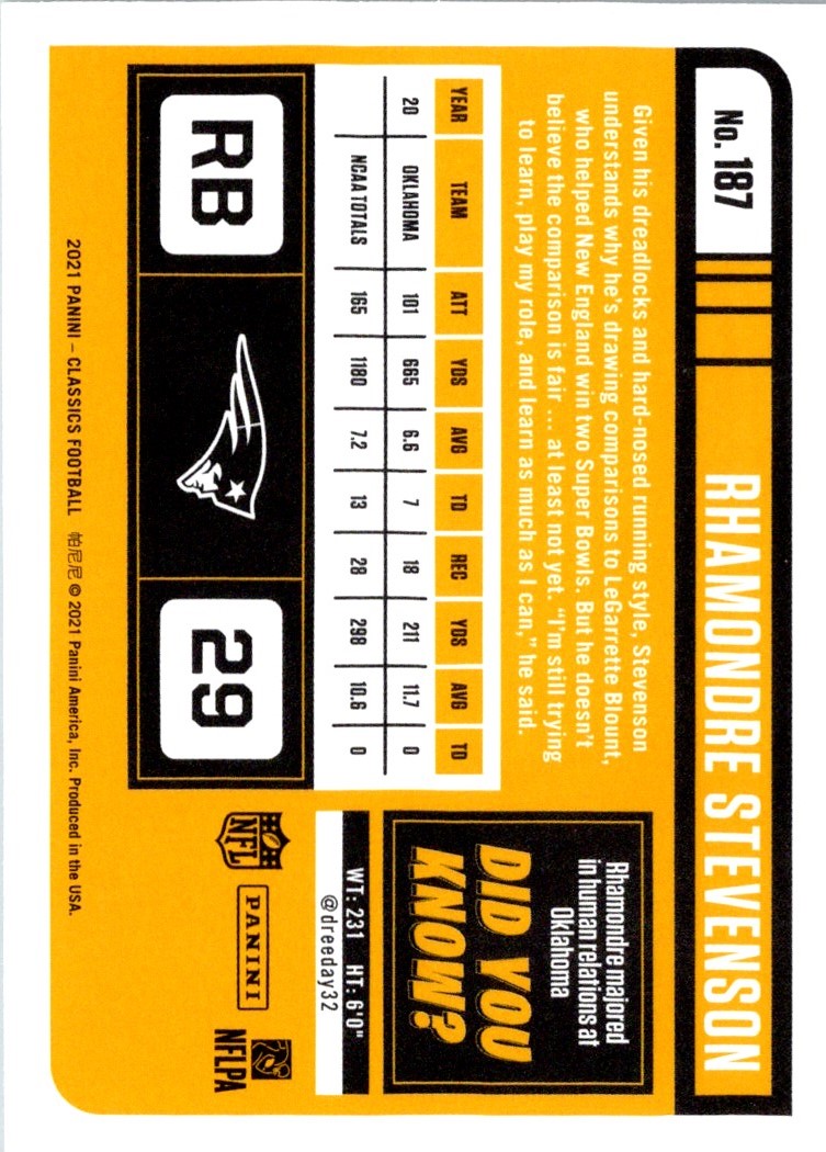 2021 Panini Classics Rhamondre Stevenson #187