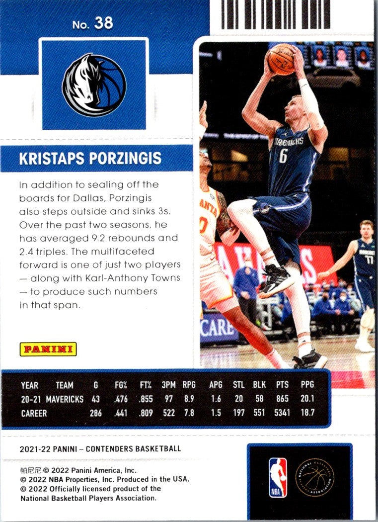 Description: 2021 Panini Contenders Ticket Kristaps Porzingis #38
