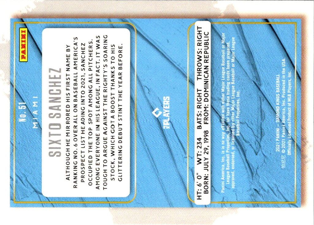 Description: 2021 Panini Diamond Kings Blue Sixto Sanchez #51