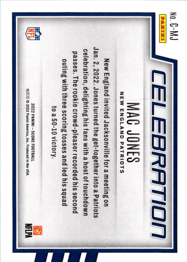 Description: 2022 Score Celebration Mac Jones #C-MJ