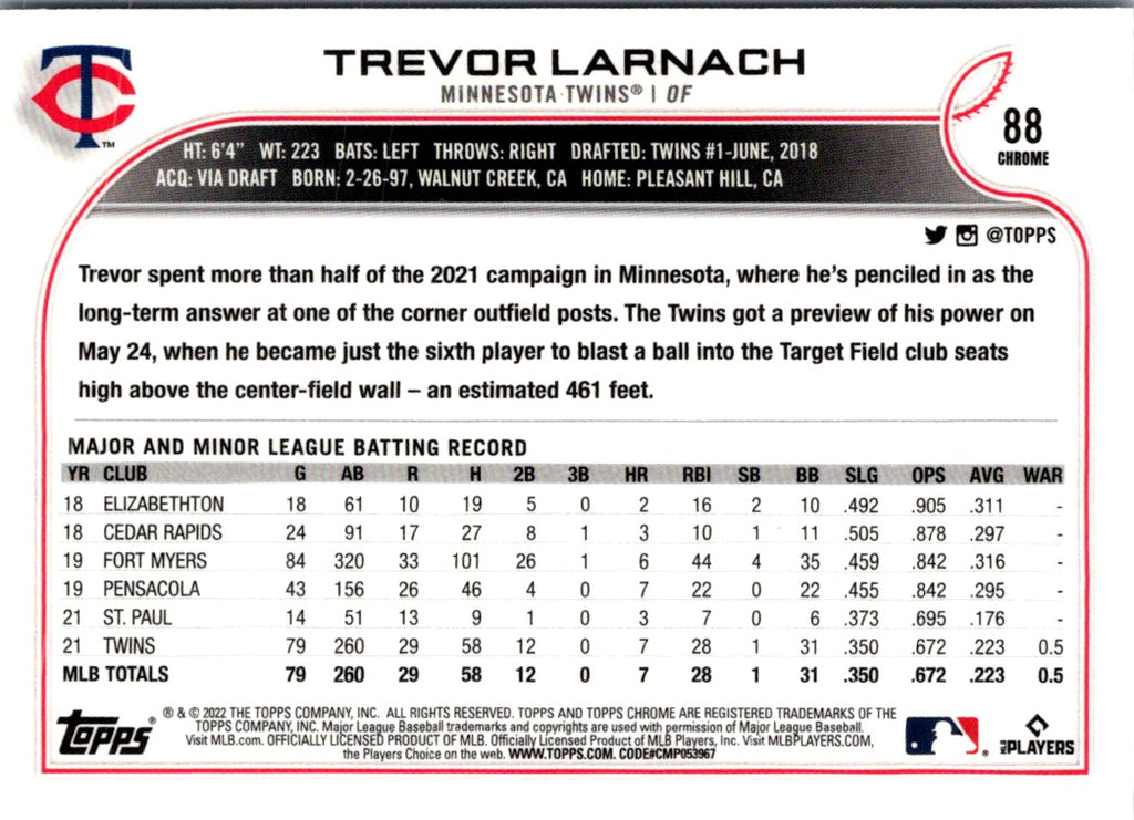 Description: 2022 Topps Chrome Trevor Larnach #88