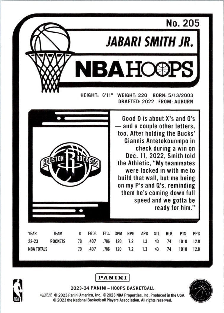 Description: 2023 Hoops Red Backs Jabari Smith Jr. #205